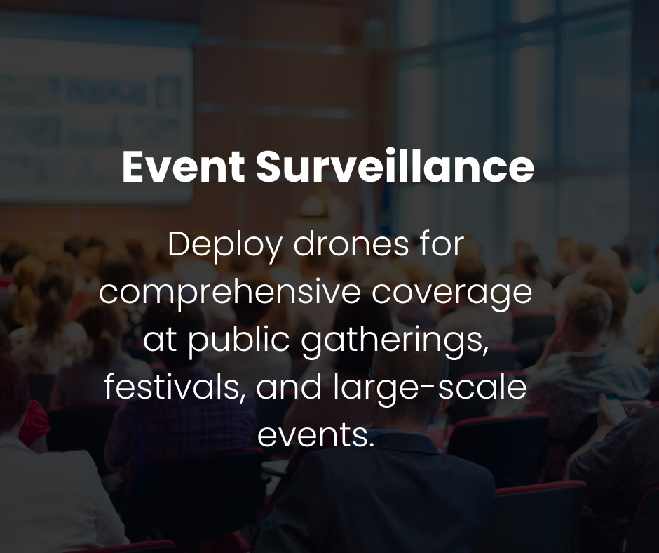 Our drone services extend far beyond simple aerial photography. Whether it’s for one-off events or continuous surveillance needs, our drones are equipped with high-definition cameras that deliver detailed visuals from above, offering a strategic advantage in security monitoring.
